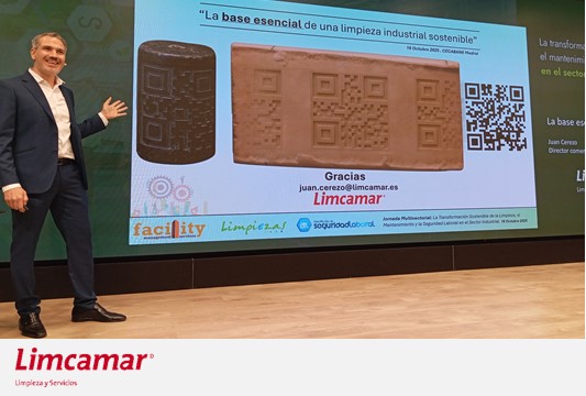 Juan Cerezo destaca la importancia de integrar los pilares ambiental, económico y social para una transformación sostenible del sector. “La base esencial de una limpieza industrial sostenible” destacó el Director Comercial de Limcamar.